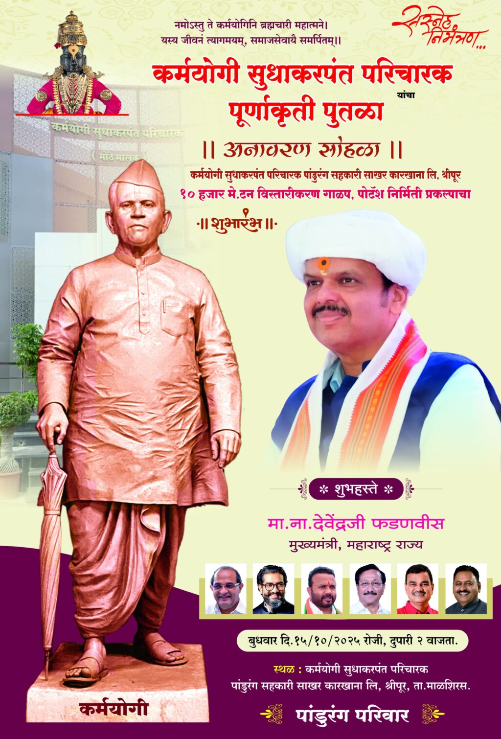 माजी आमदार कर्मयोगी सुधाकरपंत परिचारक यांच्या पूर्ण कृती पुतळ्याचे मुख्यमंत्री देवेंद्र फडणवीस यांच्या हस्ते अनावरण